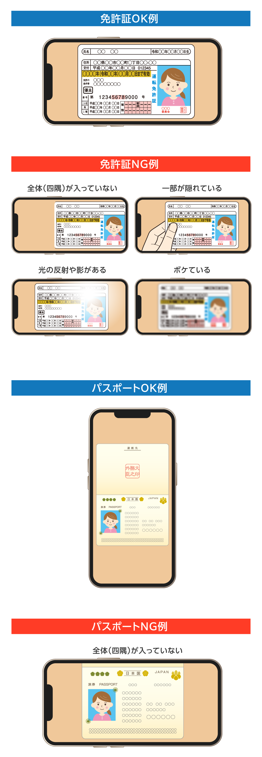 不正登録防止の観点から、下記の身分証画像はお受け出来かねます為、予めご確認下さい。